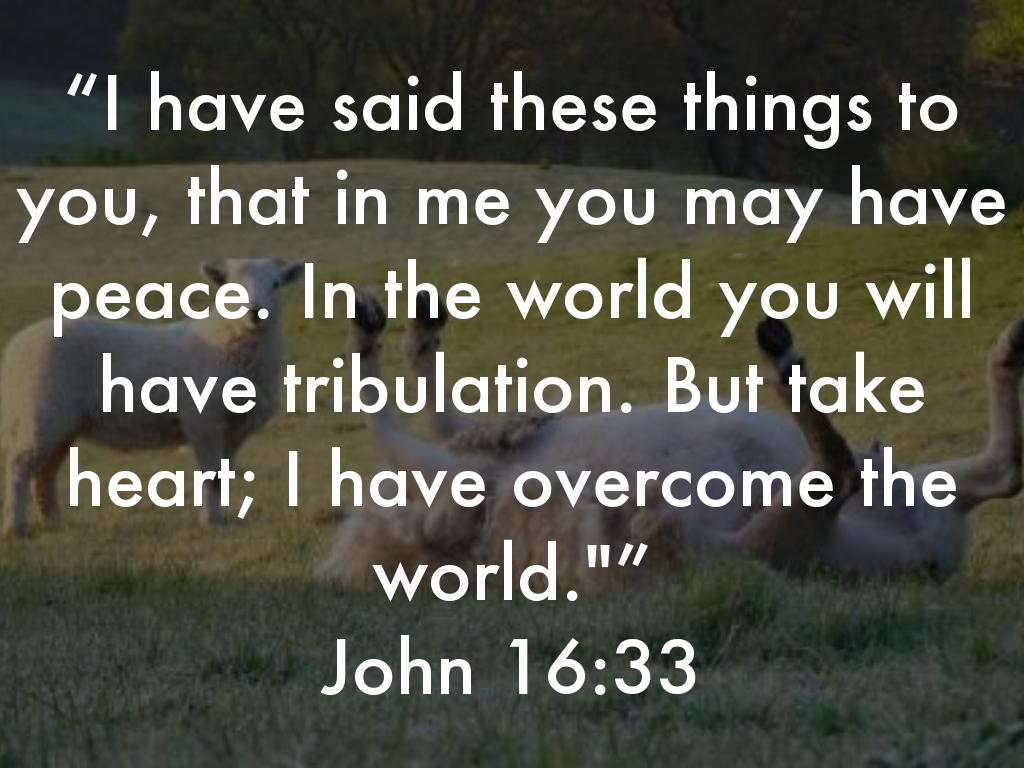 “I have said these things to you, that in me you may have peace. In the world you will have tribulation. But take heart; I have overcome the world."”