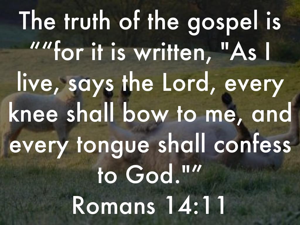 The truth of the gospel is ““for it is written, "As I live, says the Lord, every knee shall bow to me, and every tongue shall confess to God."”