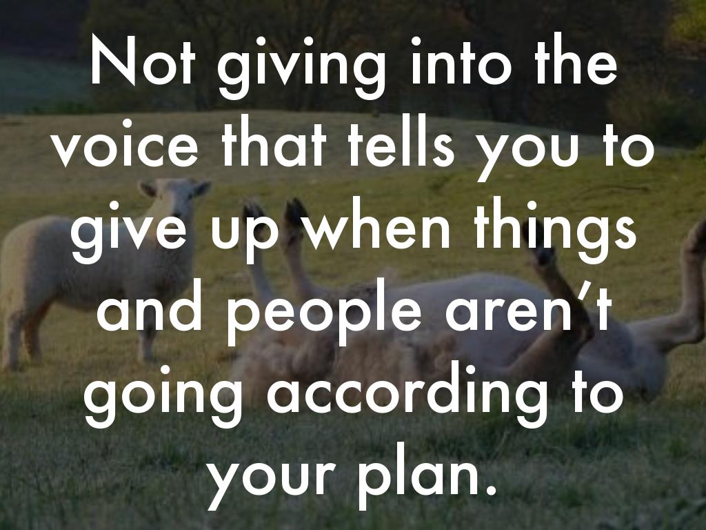 Not giving into the voice that tells you to give up when things and people aren’t going according to your plan.