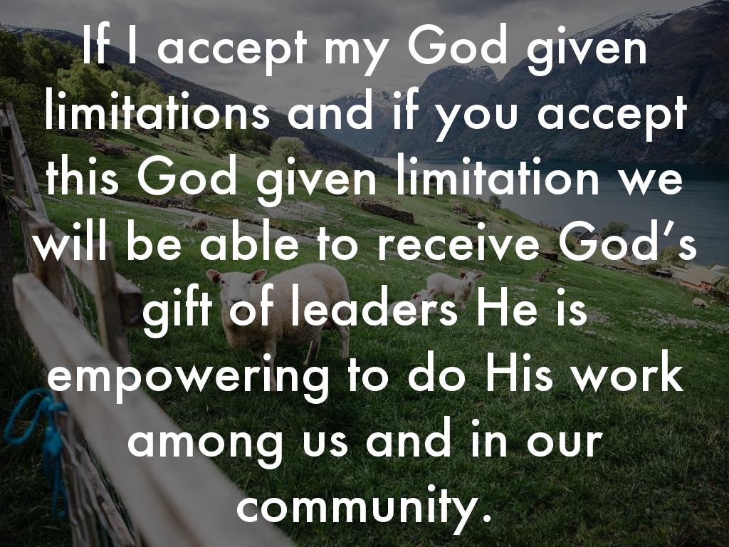 If I accept my God given limitations and if you accept this God given limitation we will be able to receive God’s gift of leaders He is empowering to do His work among us and in our community.