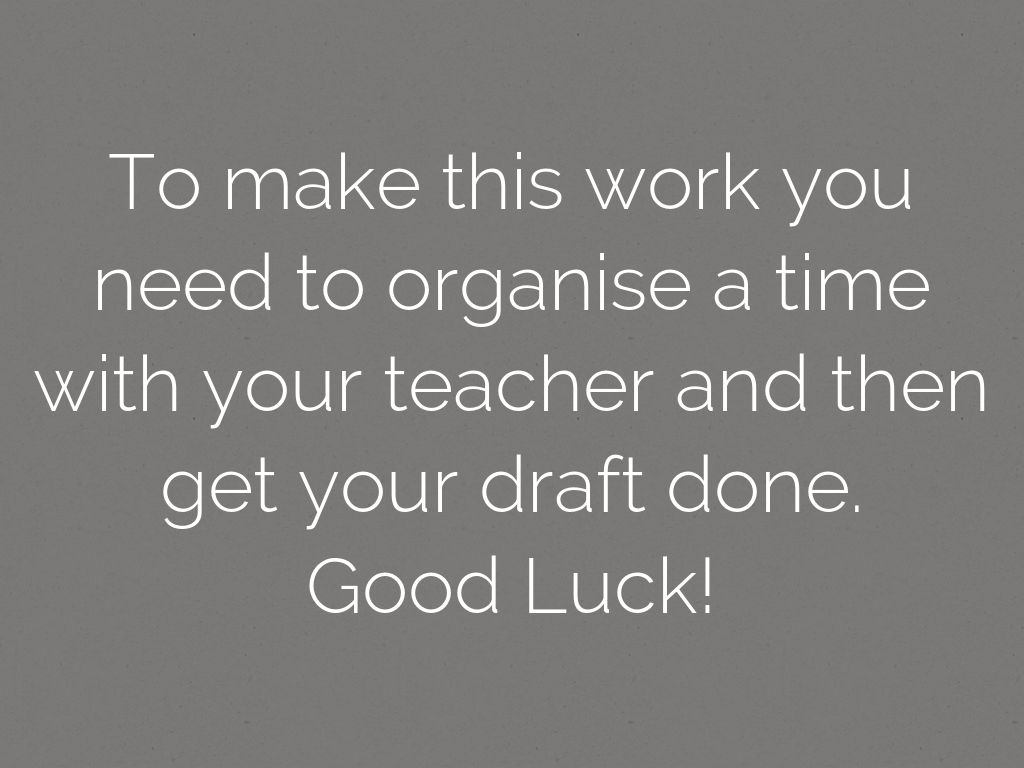To make this work you need to organise a time with your teacher and then get your draft done.