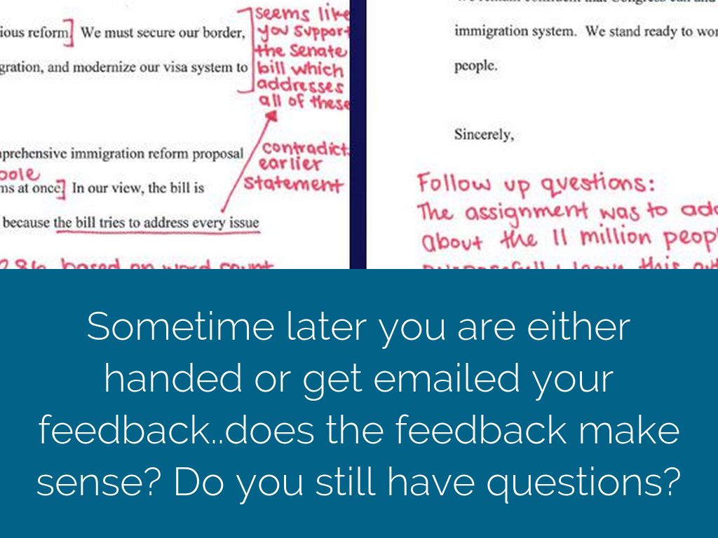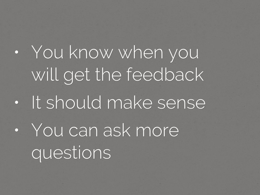 Sometime later you are either handed or get emailed your feedback..does the feedback make sense? Do you still have questions?