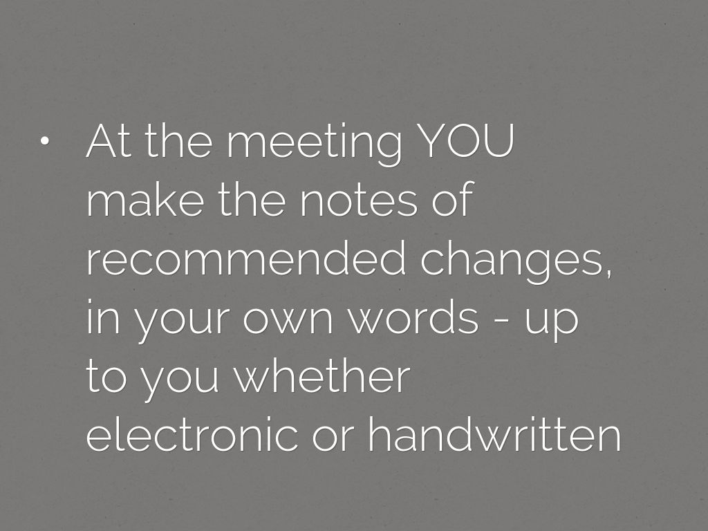 • At the meeting YOU make the notes of recommended changes, in your own words - up to you whether electronic or handwritten