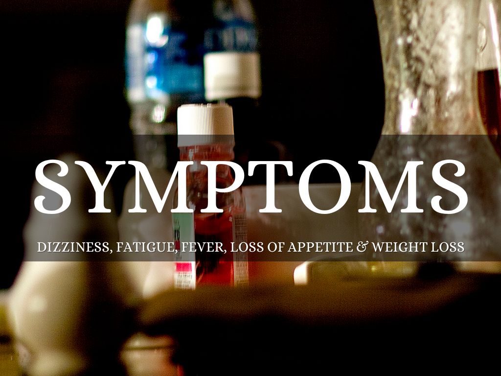 Dizziness, fatigue, fever, loss of appetite & weight loss