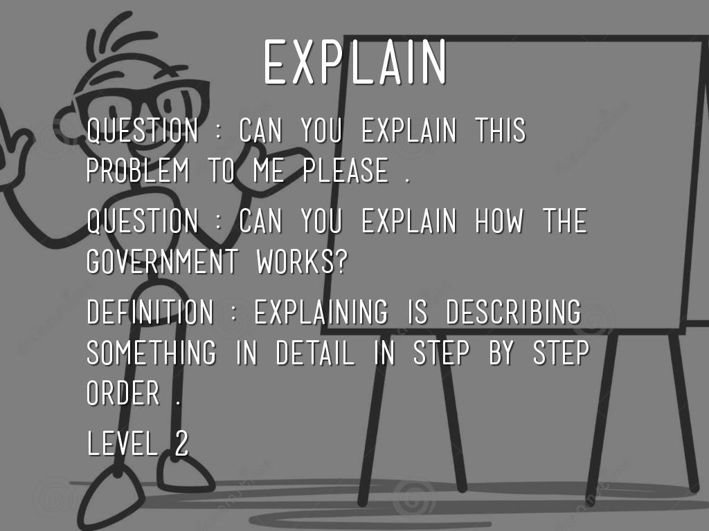 Definition : explaining is describing something in detail in step by step order .