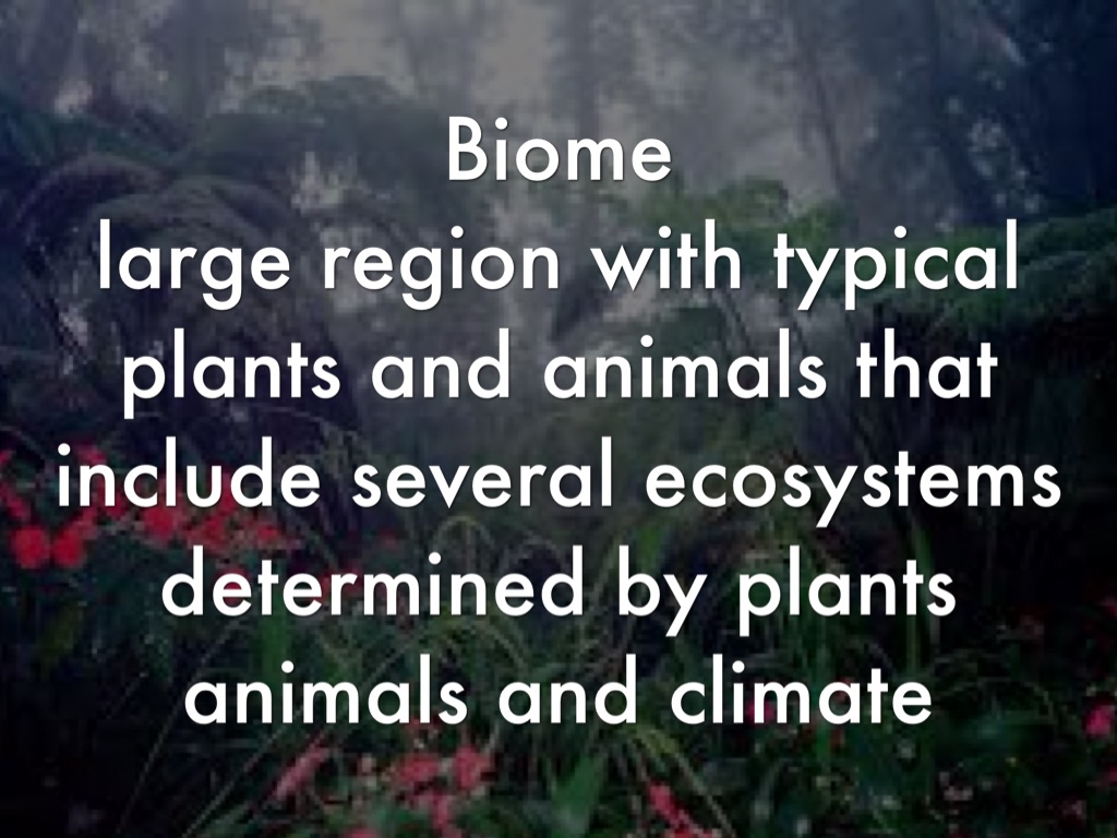 large region with typical plants and animals that include several ecosystems determined by plants animals and climate