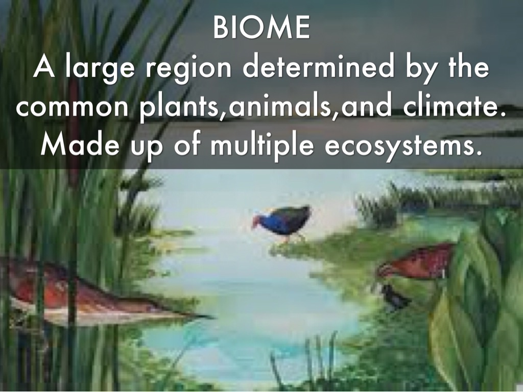 A large region determined by the common plants,animals,and climate. Made up of multiple ecosystems.