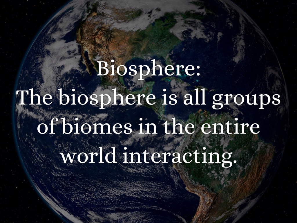 The biosphere is all groups of biomes in the entire world interacting.