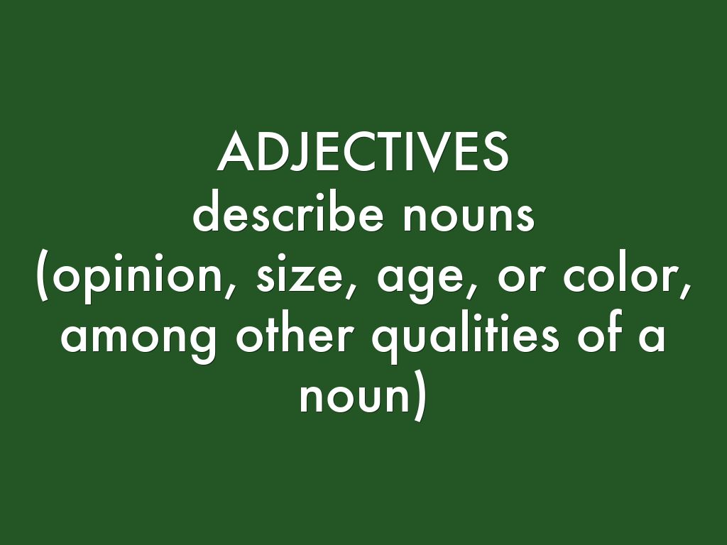- Nouns, Verbs, Adjectives, Adverbs, etc.