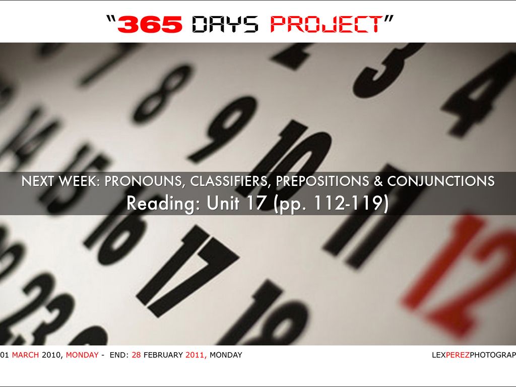Next week: Pronouns, Classifiers, prepositions & Conjunctions