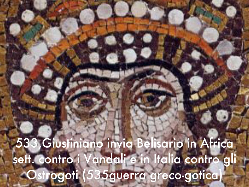 533,Giustiniano invia Belisario in Africa sett. contro i Vandali e in Italia contro gli Ostrogoti (535guerra greco-gotica)