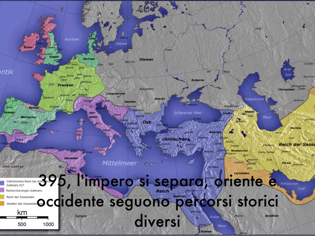 395, l'impero si separa, oriente e occidente seguono percorsi storici diversi