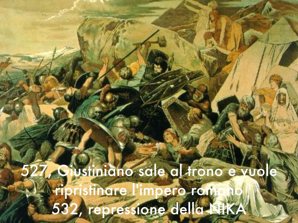 527, Giustiniano sale al trono e vuole ripristinare l'impero romano