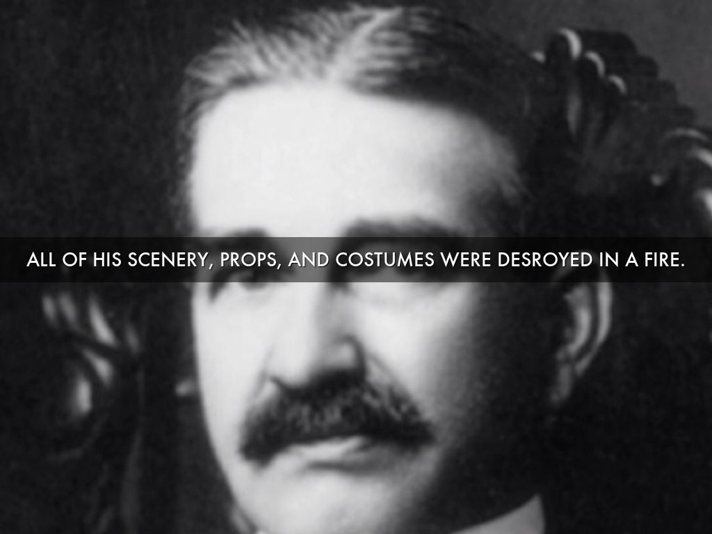 ALL OF HIS SCENERY, PROPS, AND COSTUMES WERE DESROYED IN A FIRE.