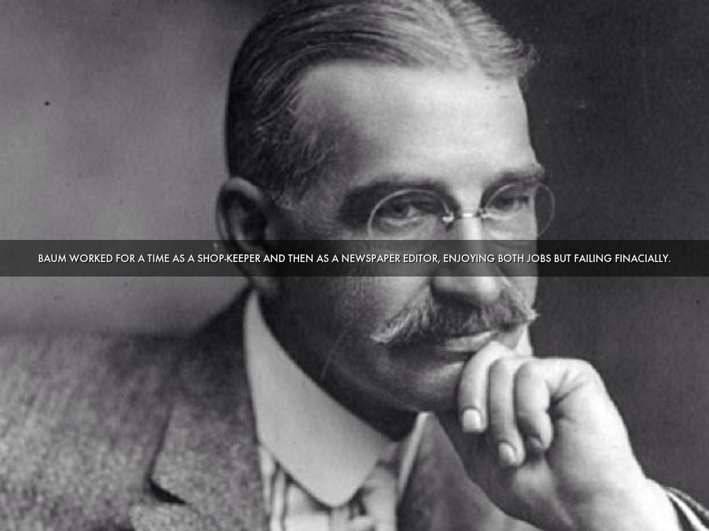 BAUM WORKED FOR A TIME AS A SHOP-KEEPER AND THEN AS A NEWSPAPER EDITOR, ENJOYING BOTH JOBS BUT FAILING FINACIALLY.
