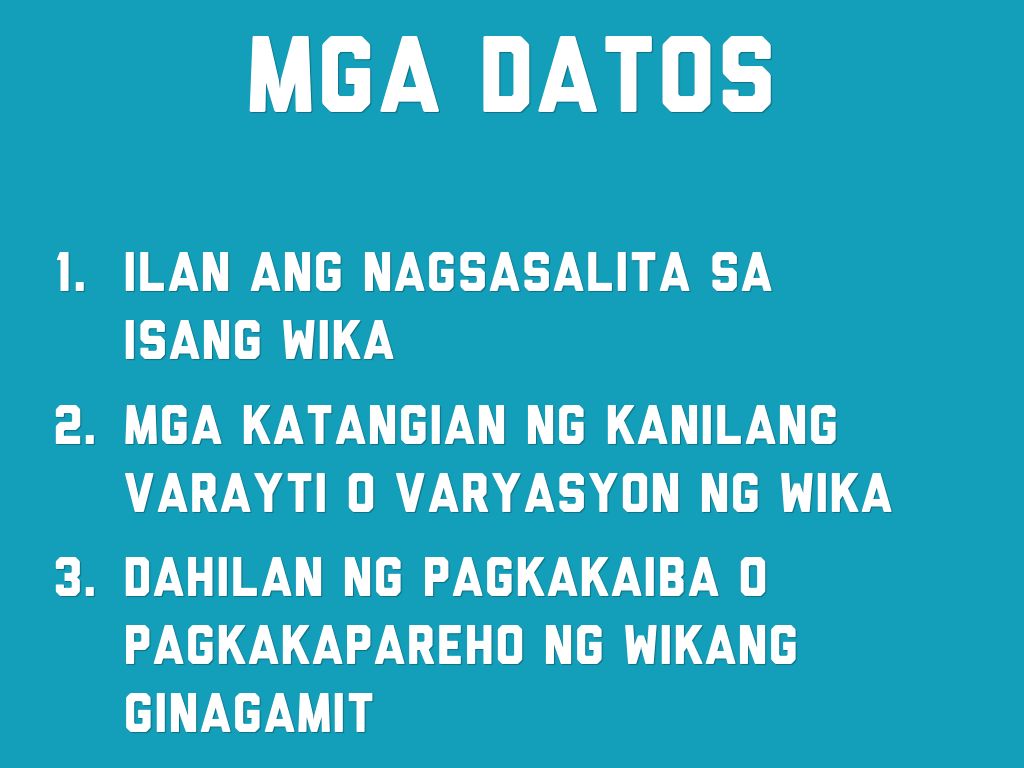 - Mga katangian ng kanilang varayti o varyasyon ng wika