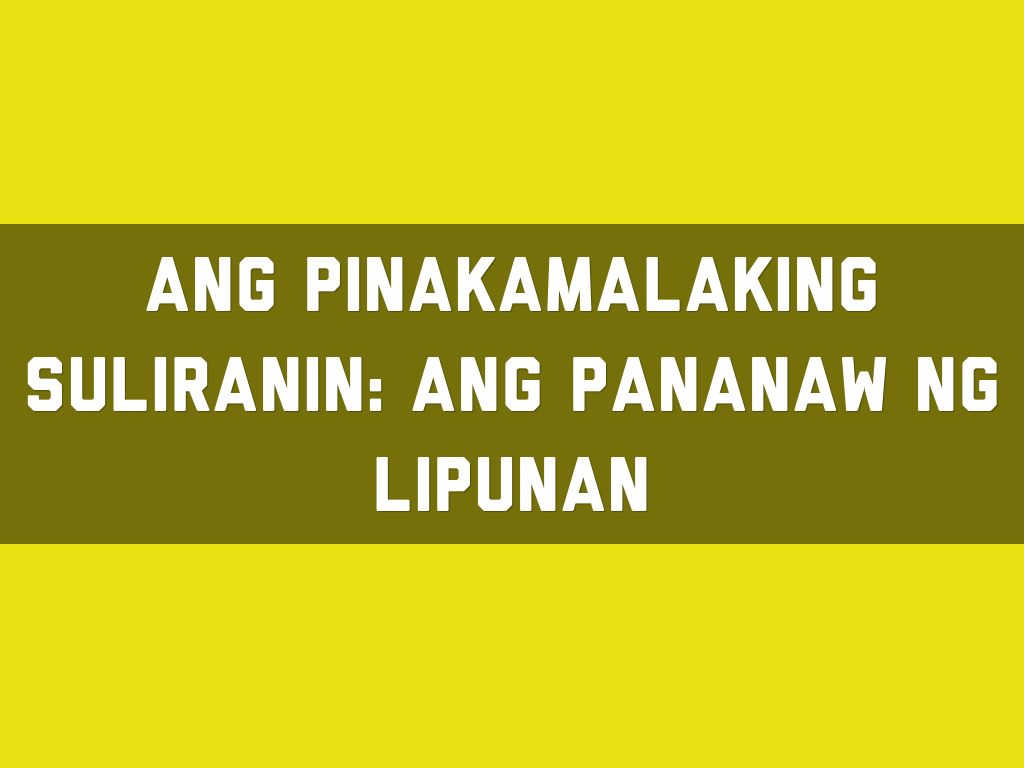 ANG PINAKAMALAKING SULIRANIN: ANG PANANAW NG LIPUNAN