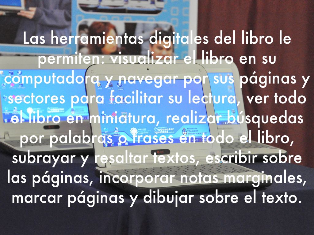 Las herramientas digitales del libro le permiten: visualizar el libro en su computadora y navegar por sus páginas y sectores para facilitar su lectura, ver todo el libro en miniatura, realizar búsquedas por palabras o frases en todo el libro, subrayar y resaltar textos, escribir sobre las páginas, incorporar notas marginales, marcar páginas y dibujar sobre el texto.