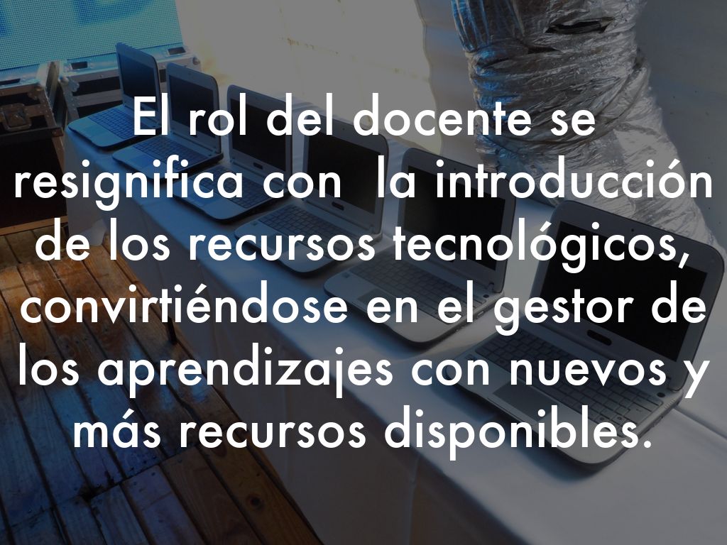 El rol del docente se resignifica con la introducción de los recursos tecnológicos, convirtiéndose en el gestor de los aprendizajes con nuevos y más recursos disponibles.
