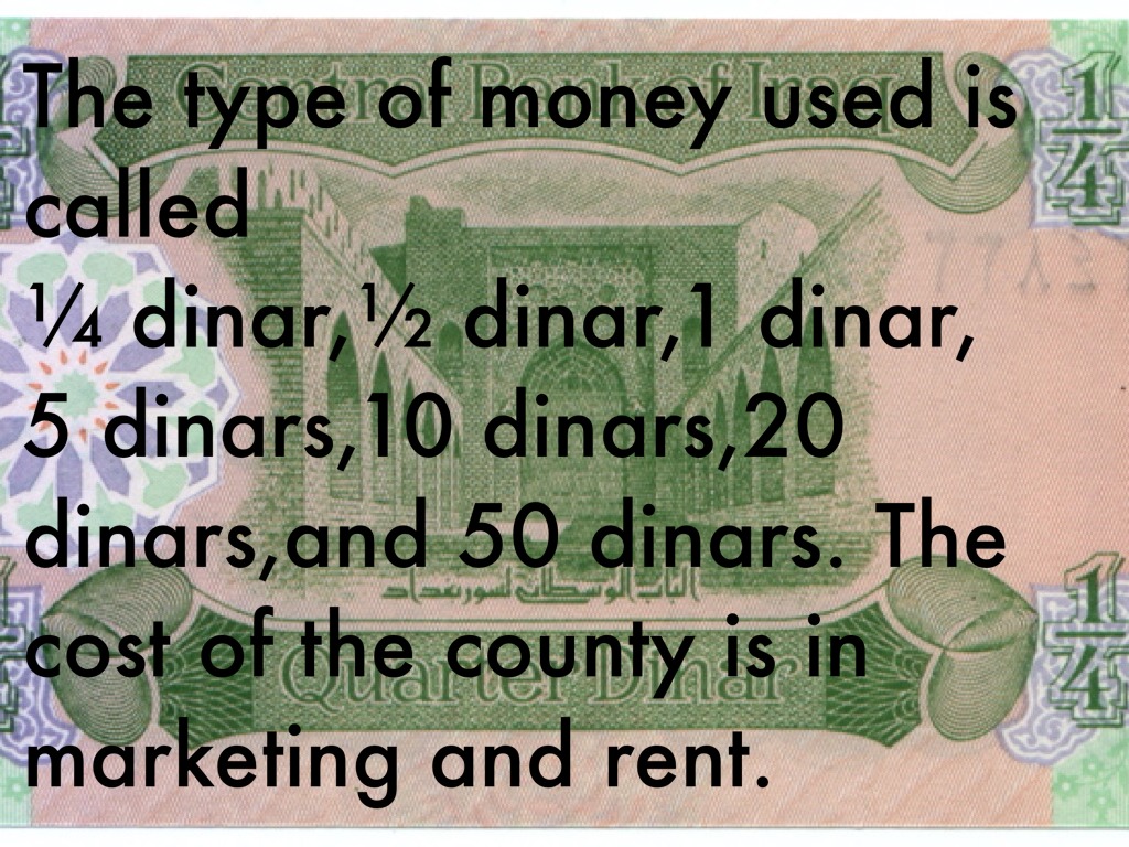 5 dinars,10 dinars,20 dinars,and 50 dinars. The cost of the county is in marketing and rent.