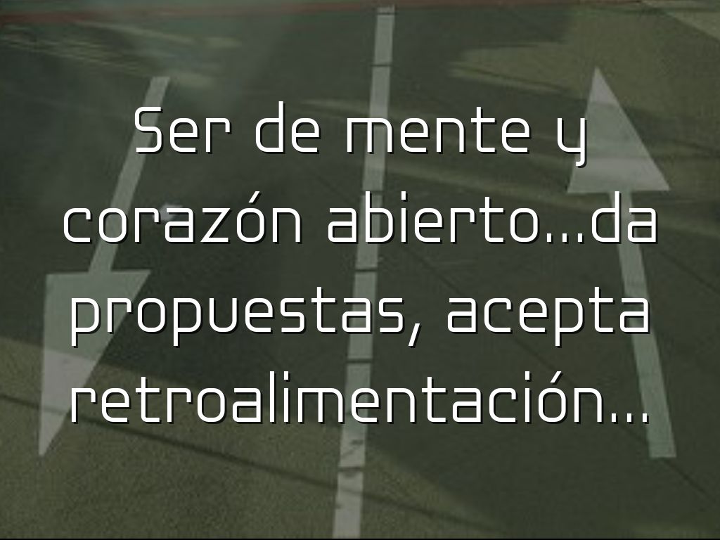 Ser de mente y corazón abierto...da propuestas, acepta retroalimentación...