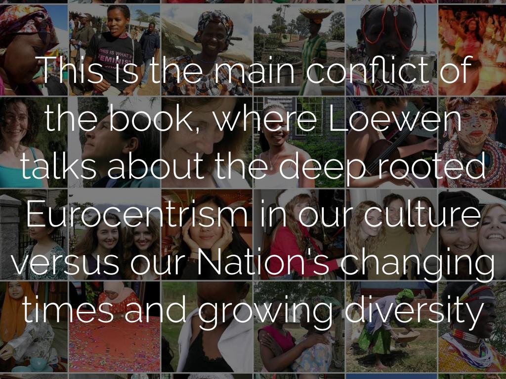 This is the main conflict of the book, where Loewen talks about the deep rooted Eurocentrism in our culture versus our Nation's changing times and growing diversity