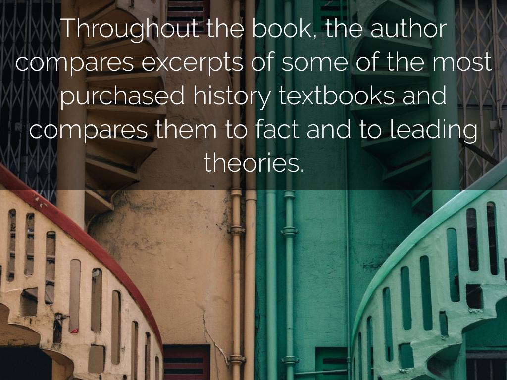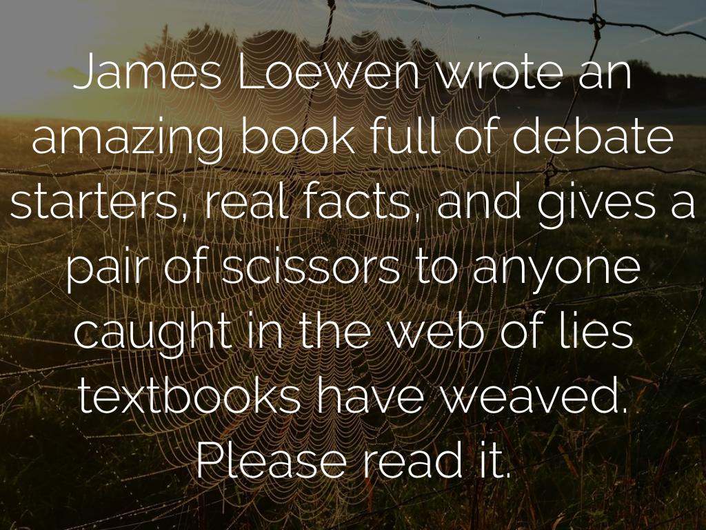 James Loewen wrote an amazing book full of debate starters, real facts, and gives a pair of scissors to anyone caught in the web of lies textbooks have weaved. Please read it.