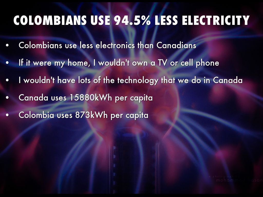 Colombians use 94.5% less electricity