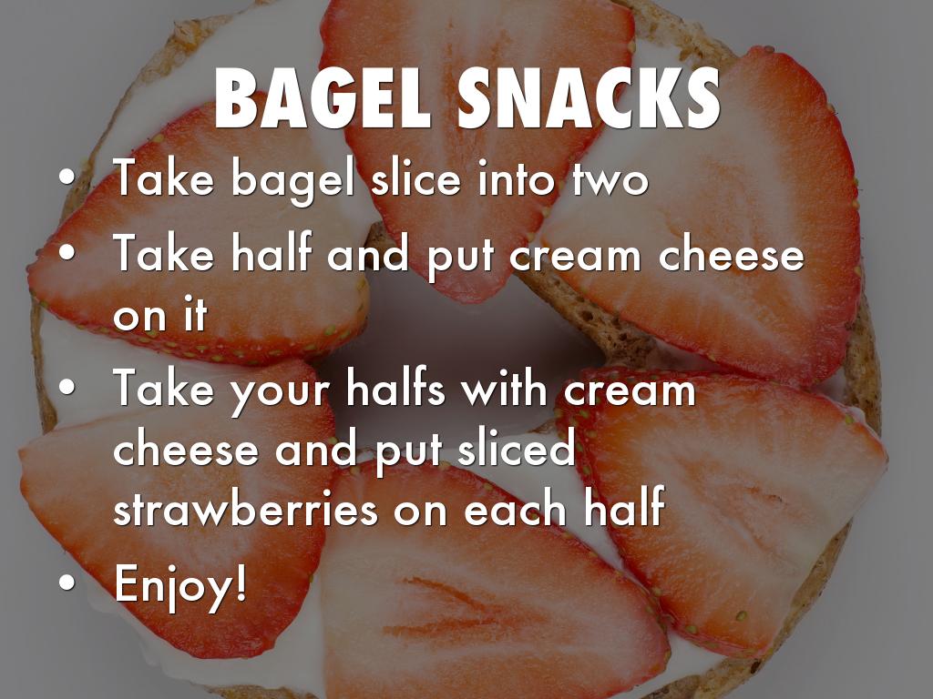 • Take your halfs with cream cheese and put sliced strawberries on each half
