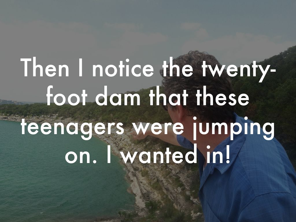 Then I notice the twenty-foot dam that these teenagers were jumping on. I wanted in!