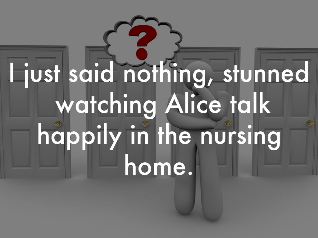 I just said nothing, stunned watching Alice talk happily in the nursing home.