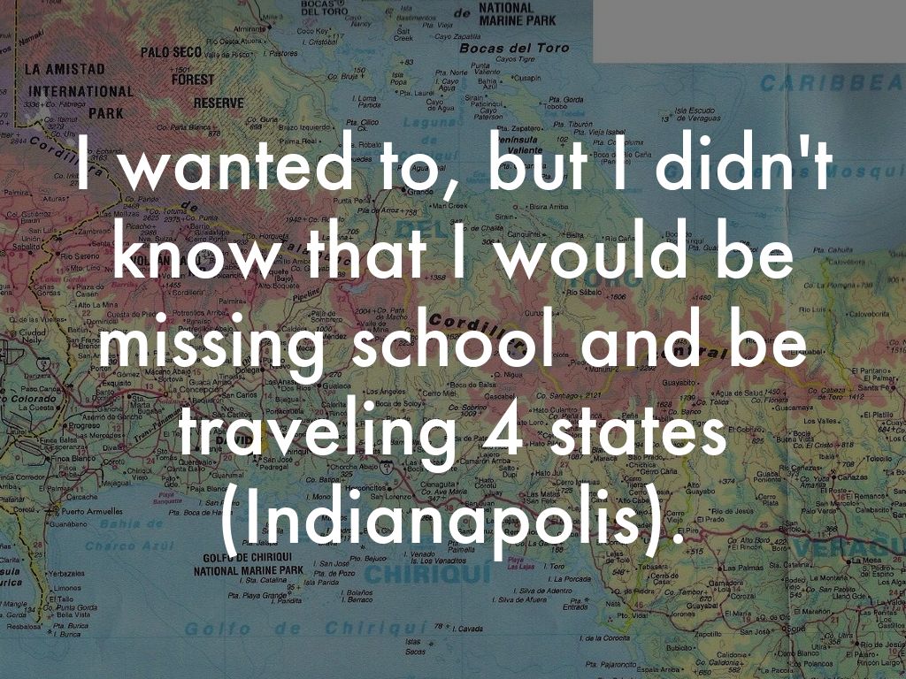 I wanted to, but I didn't know that I would be missing school and be traveling 4 states (Indianapolis).