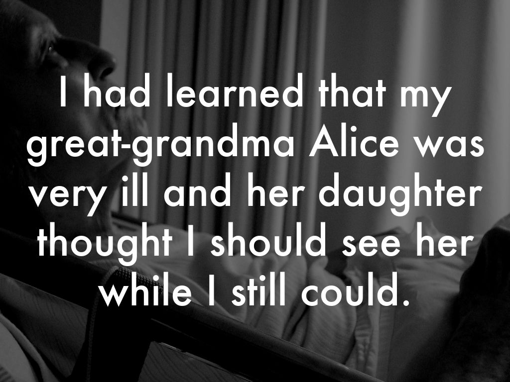 I had learned that my great-grandma Alice was very ill and her daughter thought I should see her while I still could.