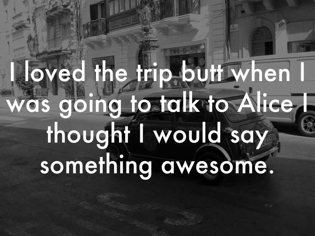 I loved the trip butt when I was going to talk to Alice I thought I would say something awesome.