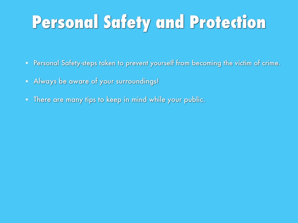 Personal Safety-steps taken to prevent yourself from becoming the victim of crime.