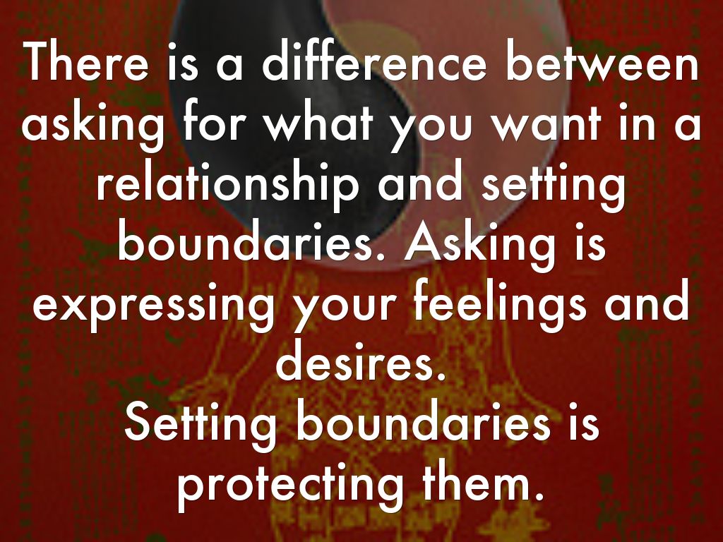 There is a difference between asking for what you want in a relationship and setting boundaries. Asking is expressing your feelings and desires.