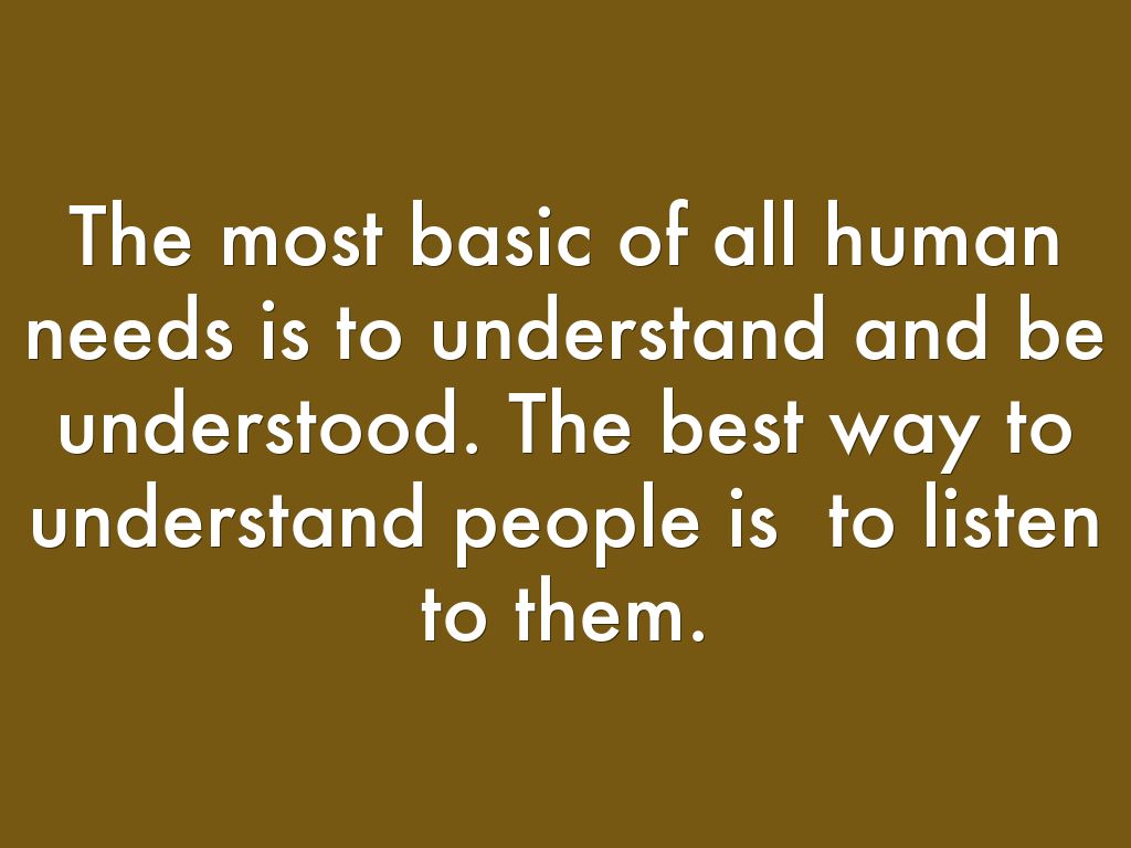 The most basic of all human needs is to understand and be understood. The best way to understand people is to listen to them.