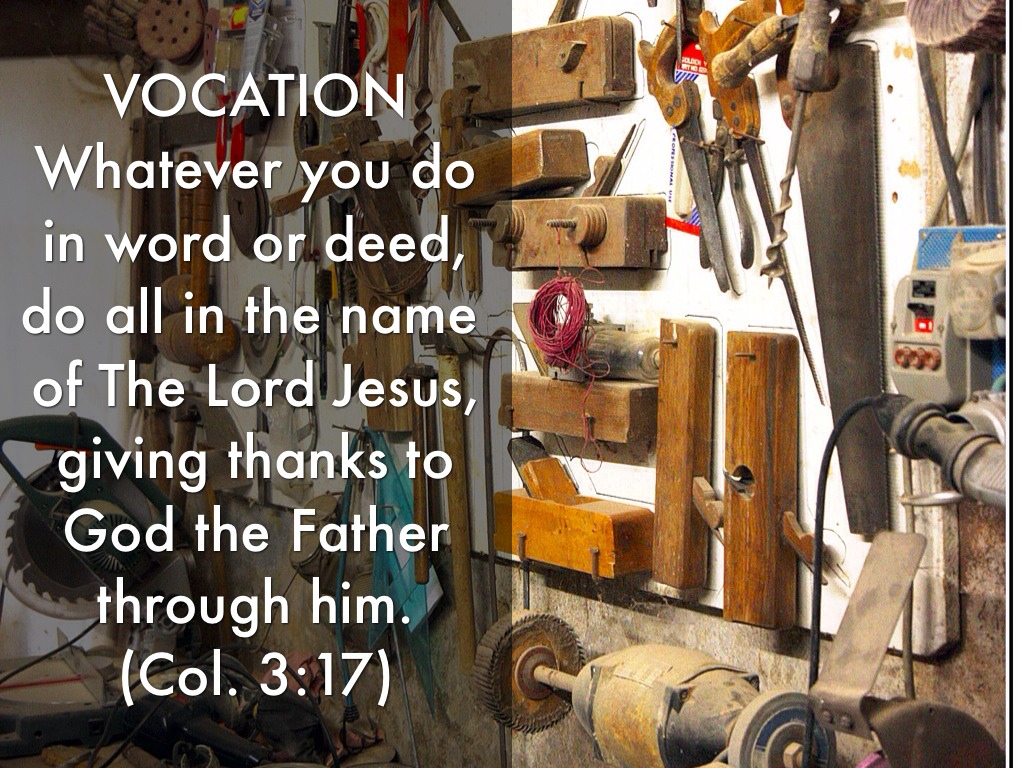VOCATION Whatever you do in word or deed, do all in the name of The Lord Jesus, giving thanks to God the Father through him. (Col. 3:17)