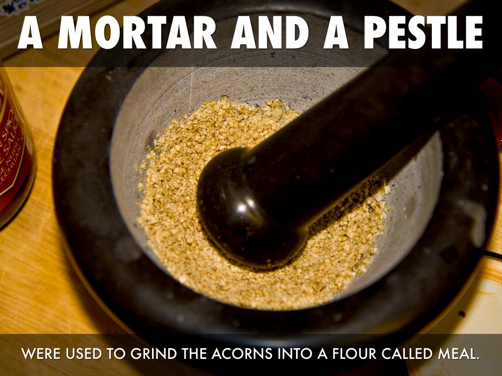 WERE USED TO GRIND THE ACORNS INTO A FLOUR CALLED MEAL.