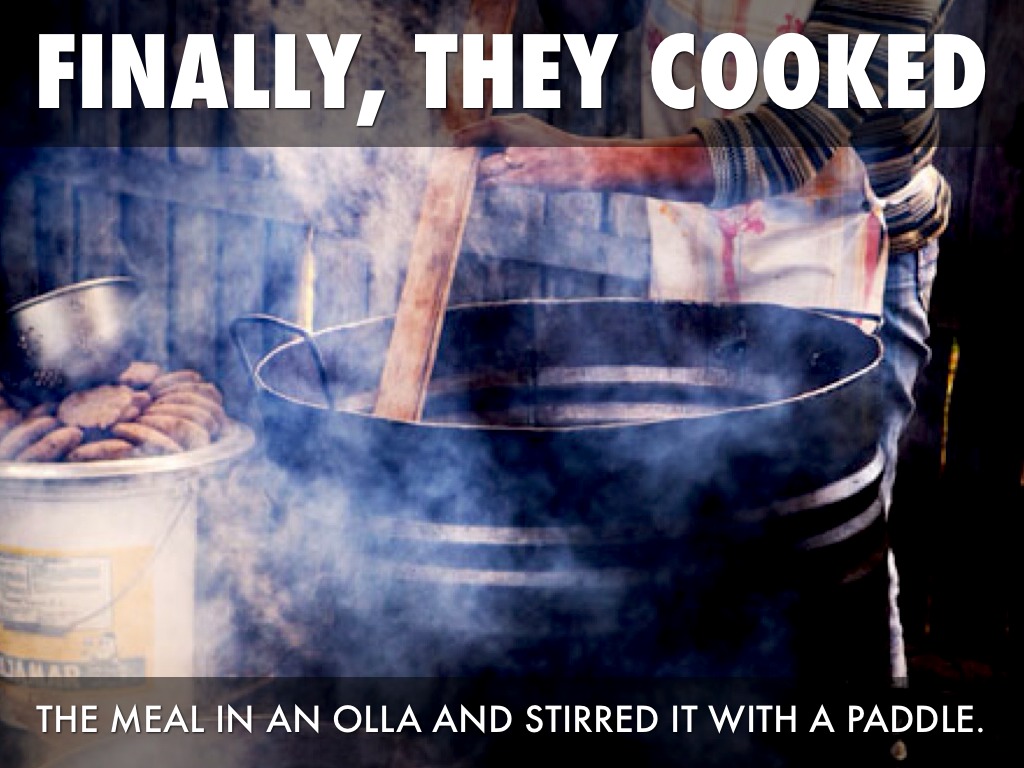 THE MEAL IN AN OLLA AND STIRRED IT WITH A PADDLE.