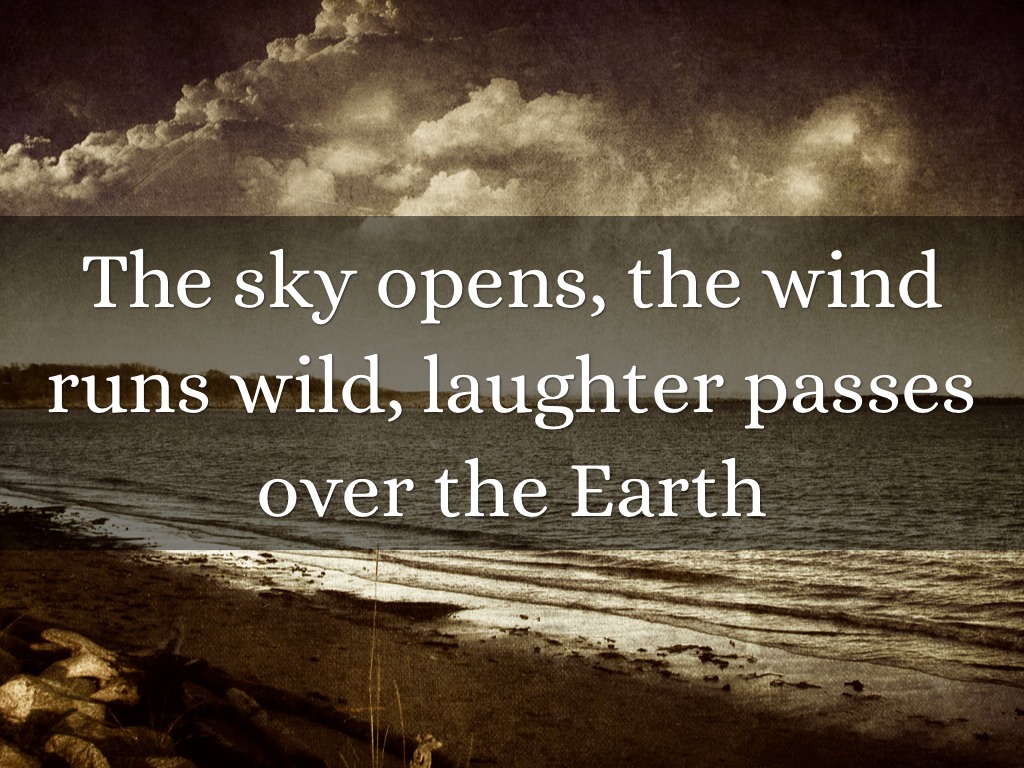 The sky opens, the wind runs wild, laughter passes over the Earth