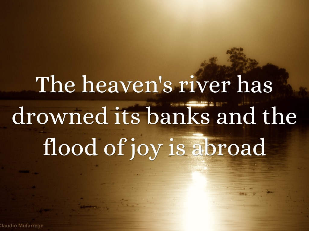 The heaven's river has drowned its banks and the flood of joy is abroad