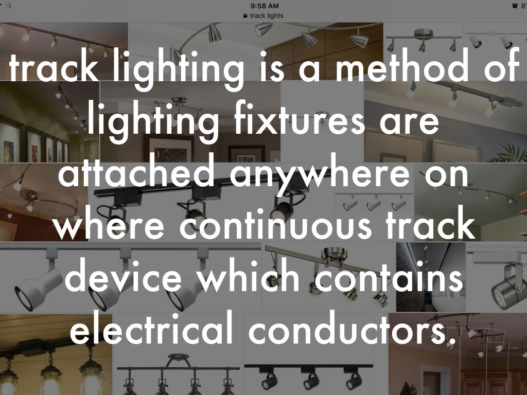 track lighting is a method of lighting fixtures are attached anywhere on where continuous track device which contains electrical conductors.