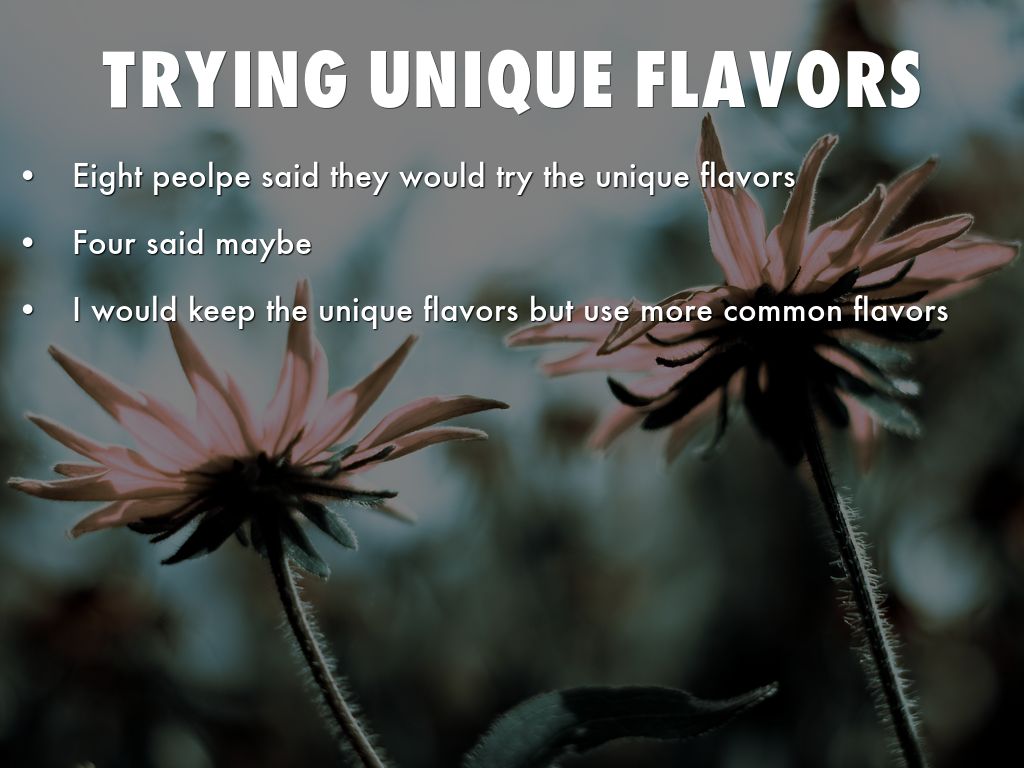 I decide to use unique,bold flavors but not go too crazy with flavor