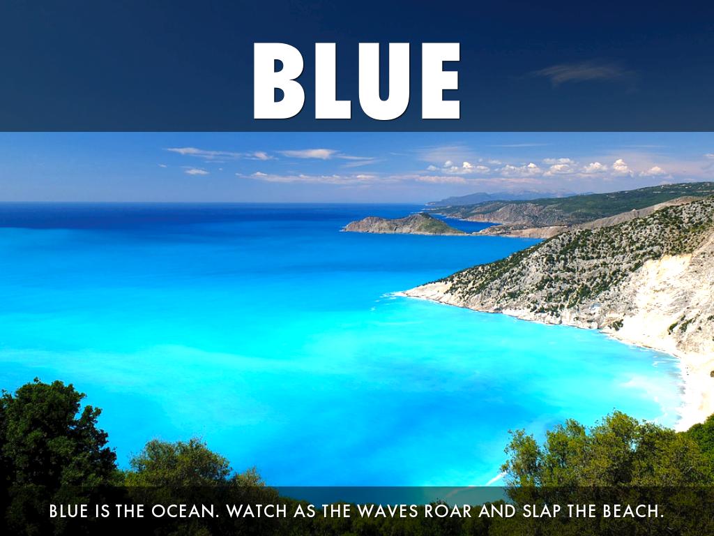 BLUE IS THE OCEAN. WATCH AS THE WAVES ROAR AND SLAP THE BEACH.