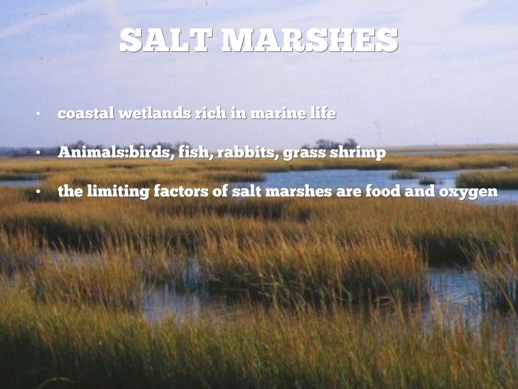 Animals: oyster reefs, coral reefs, rocky shores, marshes, and mangroves