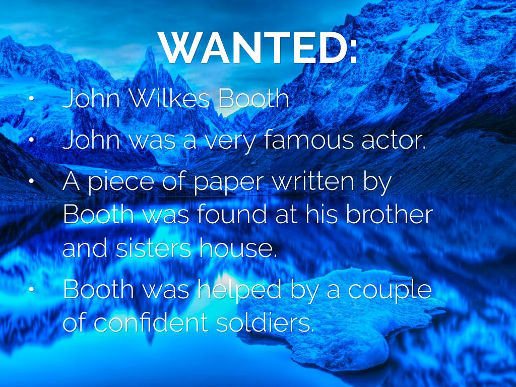 WANTED FOR THE MURDER OF PRESIDENT LINCOLN