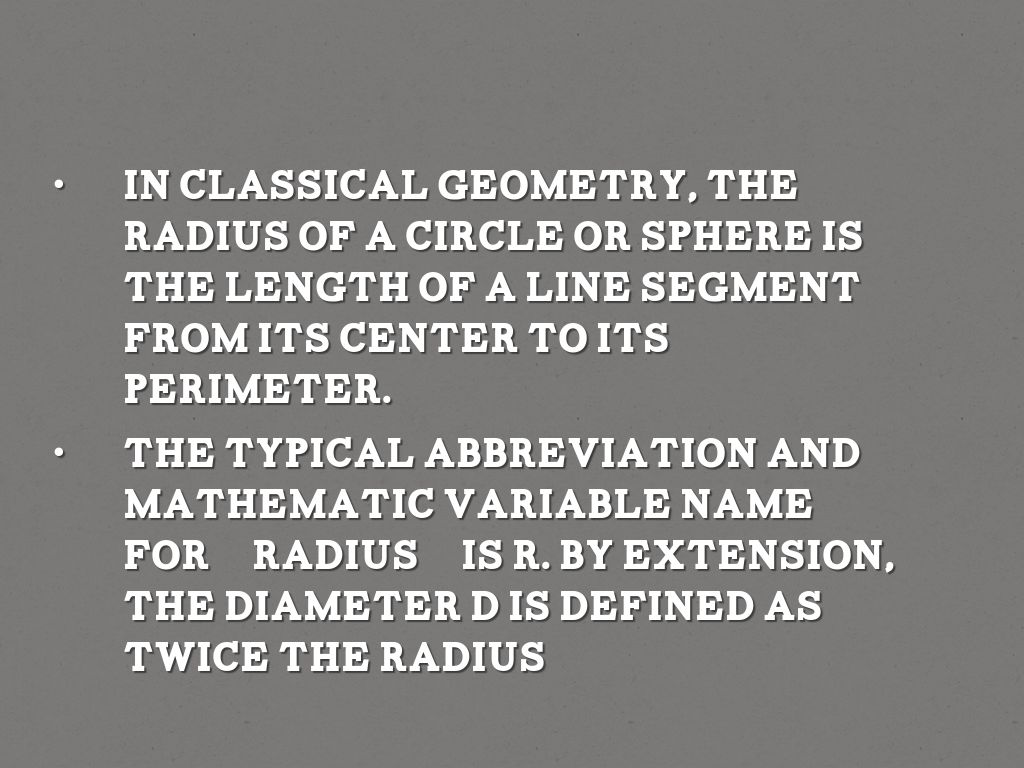 In more modern usage, the length of a diameter is also called the diameter. In this sense one speaks of the diameter rather than a diameter (which refers to the line itself), because all diameters of a circle or sphere have the same length, this being twice the radius r.
