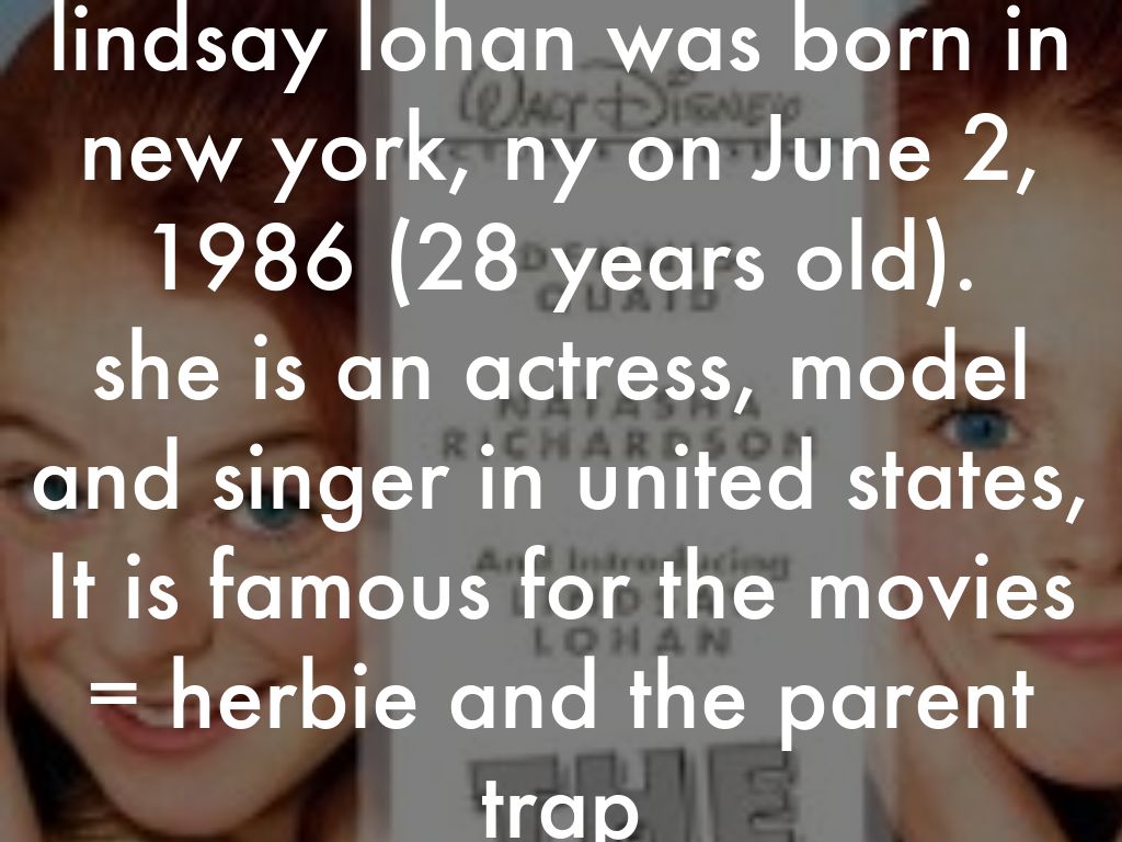 lindsay lohan was born in new york, ny on June 2, 1986 (28 years old).