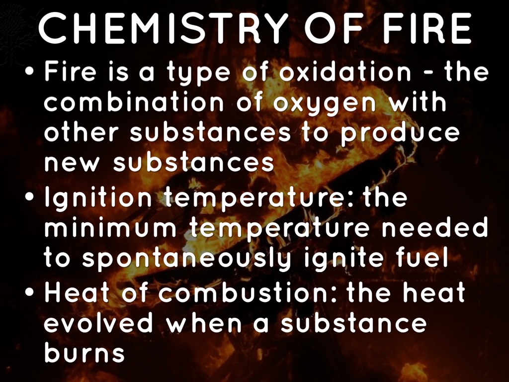 Fire is a type of oxidation - the combination of oxygen with other substances to produce new substances